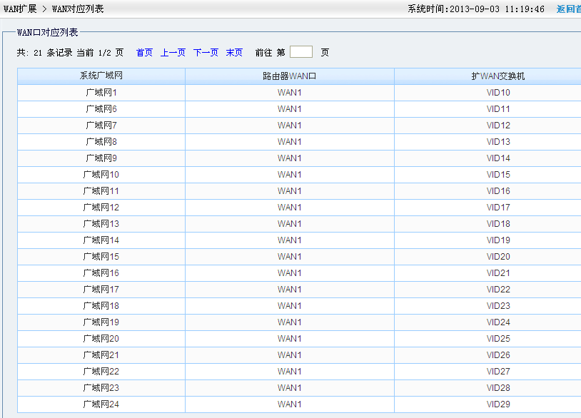 路由重启后我们可以在WAN扩展>WAN对应列表中进行查看。扩WAN后哪一个广域网对应的哪一个交换机的VLANID(图3)