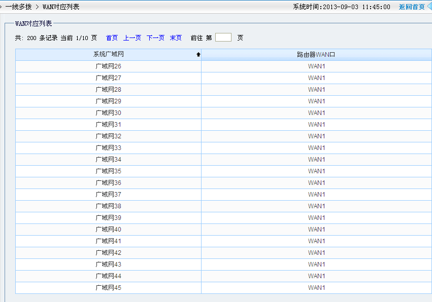 猫1的账号填写的广域网有(广域网1和广域网26到广域网45)这样子算下来一个猫可以拨号21次,那么刚才我们填写一线多拨的时候就可以每一个广域网一线多拨19次就可以了,刚才是填写的20,这里只做参考,根据实际情况进行填写。