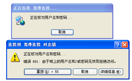 管理员给用户创建了带宽连接的账号,终端用户拨号始终是691,一个用户拨号也是691。