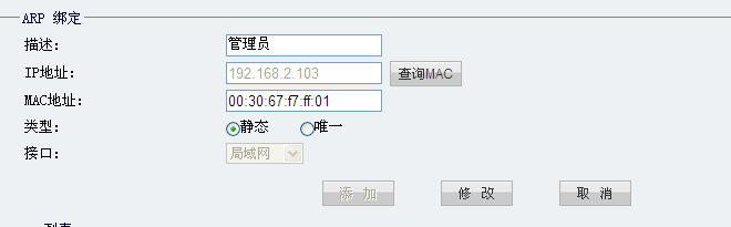 1、建议将管理员的IP和MAC地址也进行绑定。