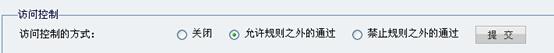 两条规则做好后访问控制的方式选择允许规则之外的通过。