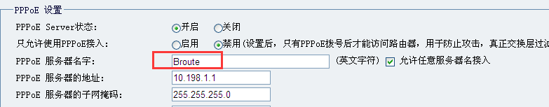 两台服务器都分别进行命名,然后把允许任意服务器接入的勾去掉,这样就只允许特定的ppoe服务器来进行接入