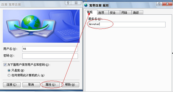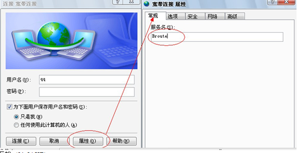 3.我们可以在客户机上定义拨号的服务器,在拨号连接里面把特定的服务器定义好。A路由的用户就指定到A路由的pppoe服务器上,B路由的用户直接指定到B路由的pppoe服务器,这样呢就形成了一一对应的关系。可以在本地的拨号连接属性里面进行修改 如下图: