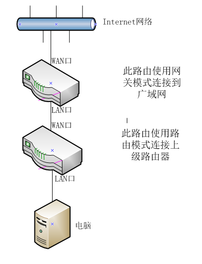 模拟网络环境:使用2个路由器做路由模式设置上网!下图1是测试网络结构图