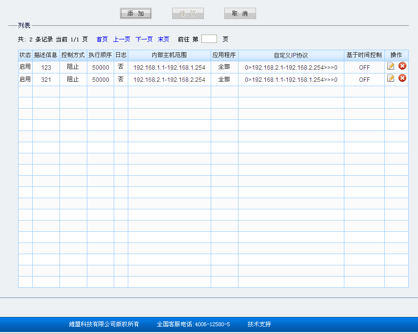 第二条规则就是把上面的主机IP地址和自定义IP协议里面的远端地址范围地址交换下顺序就行了,完成添加后如下图: