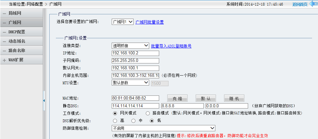 (备注:内部主机范围,填写与网关同一网段的地址。此地址分配给内网主机用户使用。)