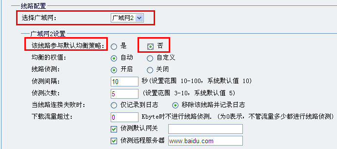 一 :将WAN2 设置成“不参与默认均衡策略”