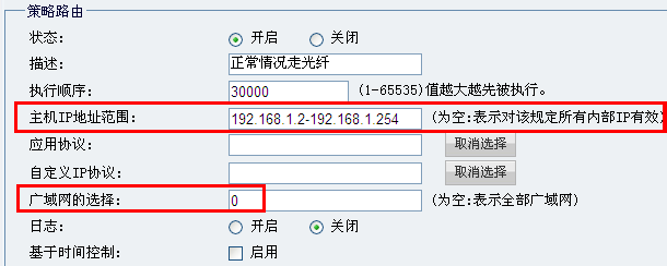二 :到“策略路由”里去做一下策略,让内网所有的客户机走WAN1,也就是光纤