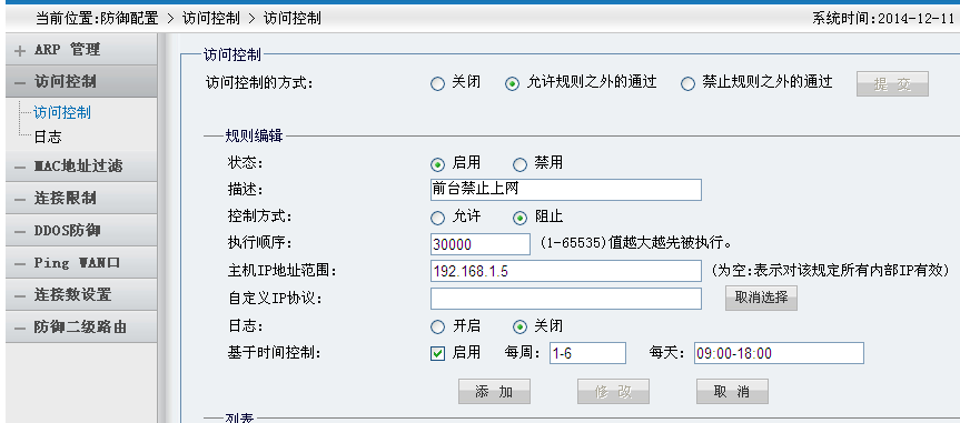 进入路由后,进入防御-访问控制、 设置方法如下图所示: