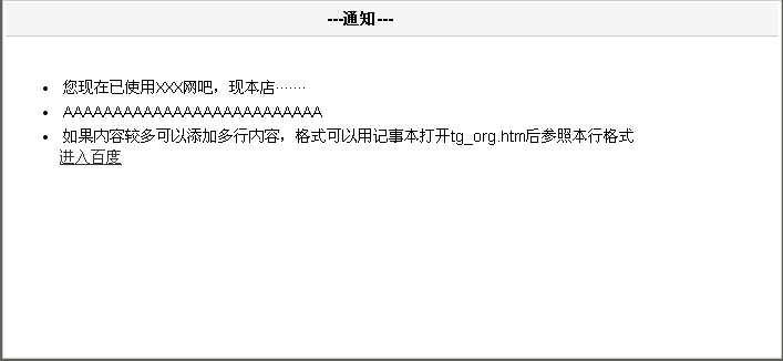 大部分的网吧管理员会在用户上网之前向客户宣传网吧的优惠政策,这时候就会用到通告系统,通过做规则,就可实现一定时间内向客户宣传网吧活动,达到推广的效果。